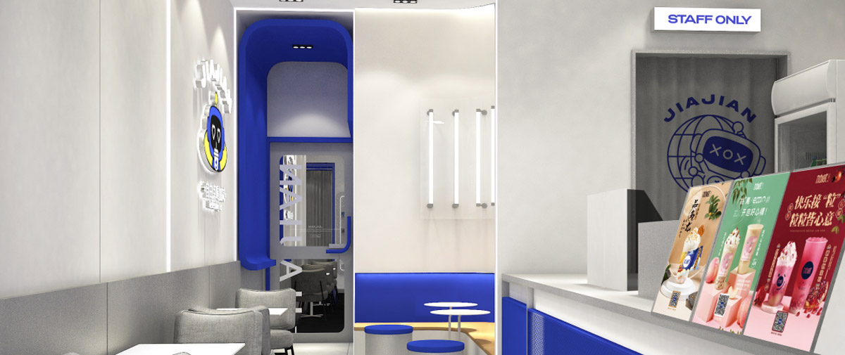 加减先后进行4次门店形象升级。全新第5代门店形象以简洁的设计风格及多样的装潢理念呈现新概念茶饮品牌风貌。